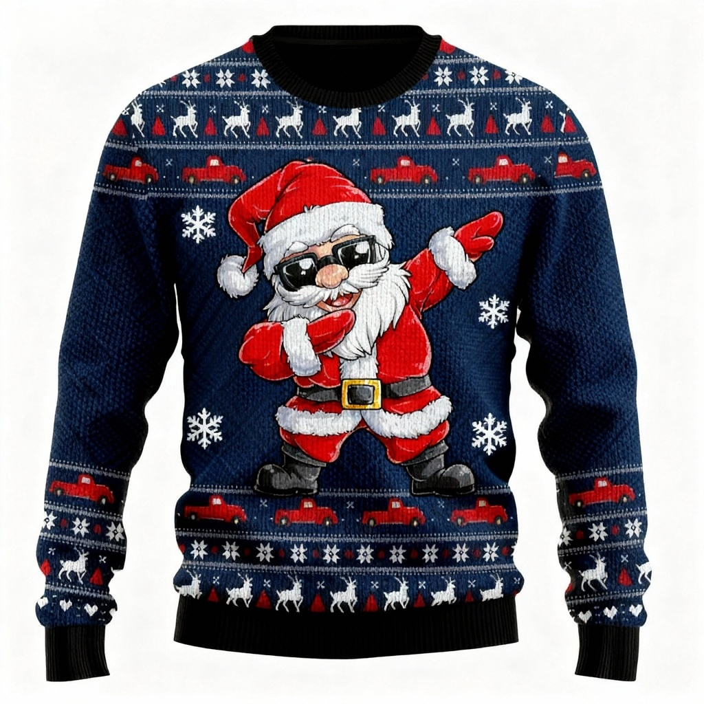 Loud, Proud & Unmissable: Goofy Santa Print Ugly Christmas Sweater​