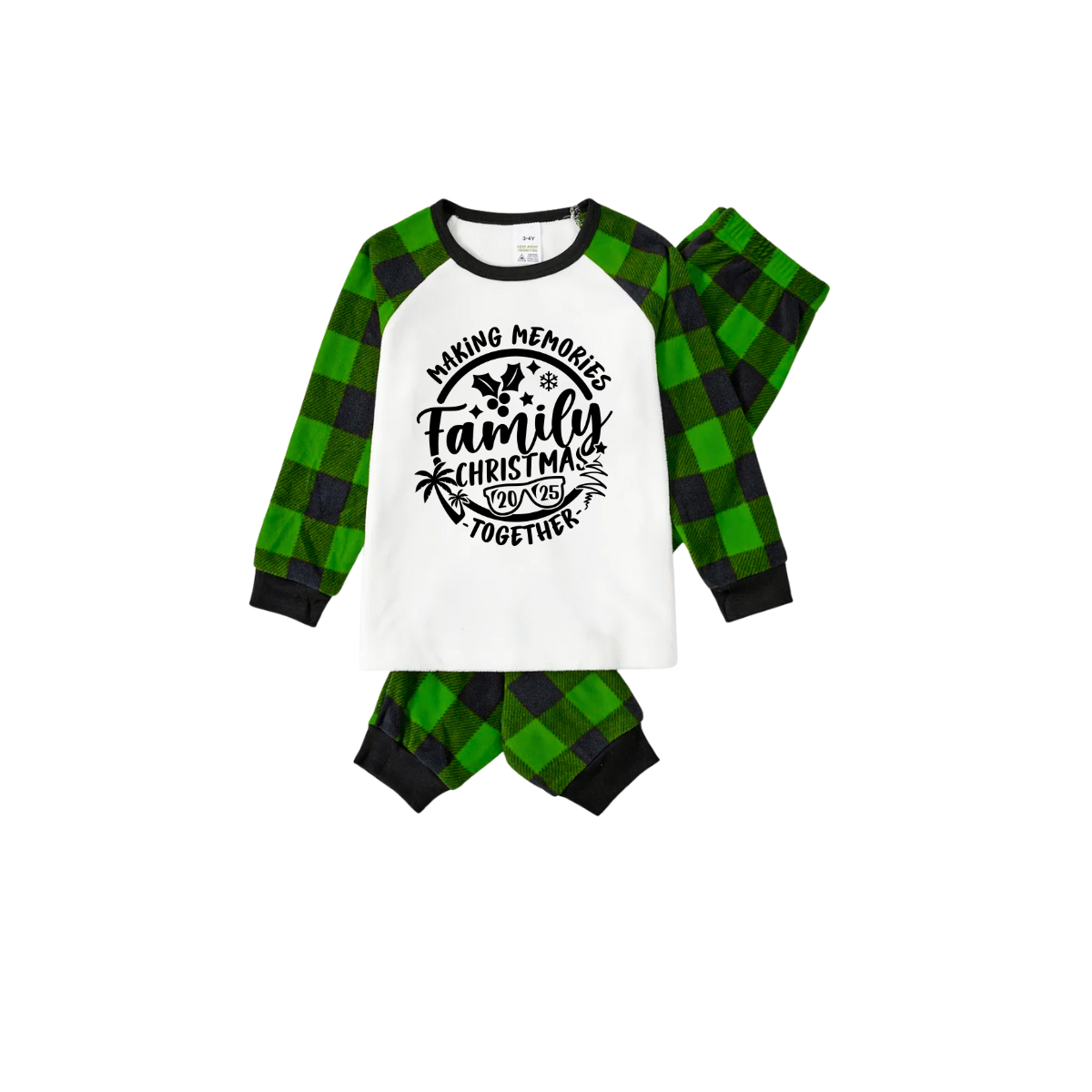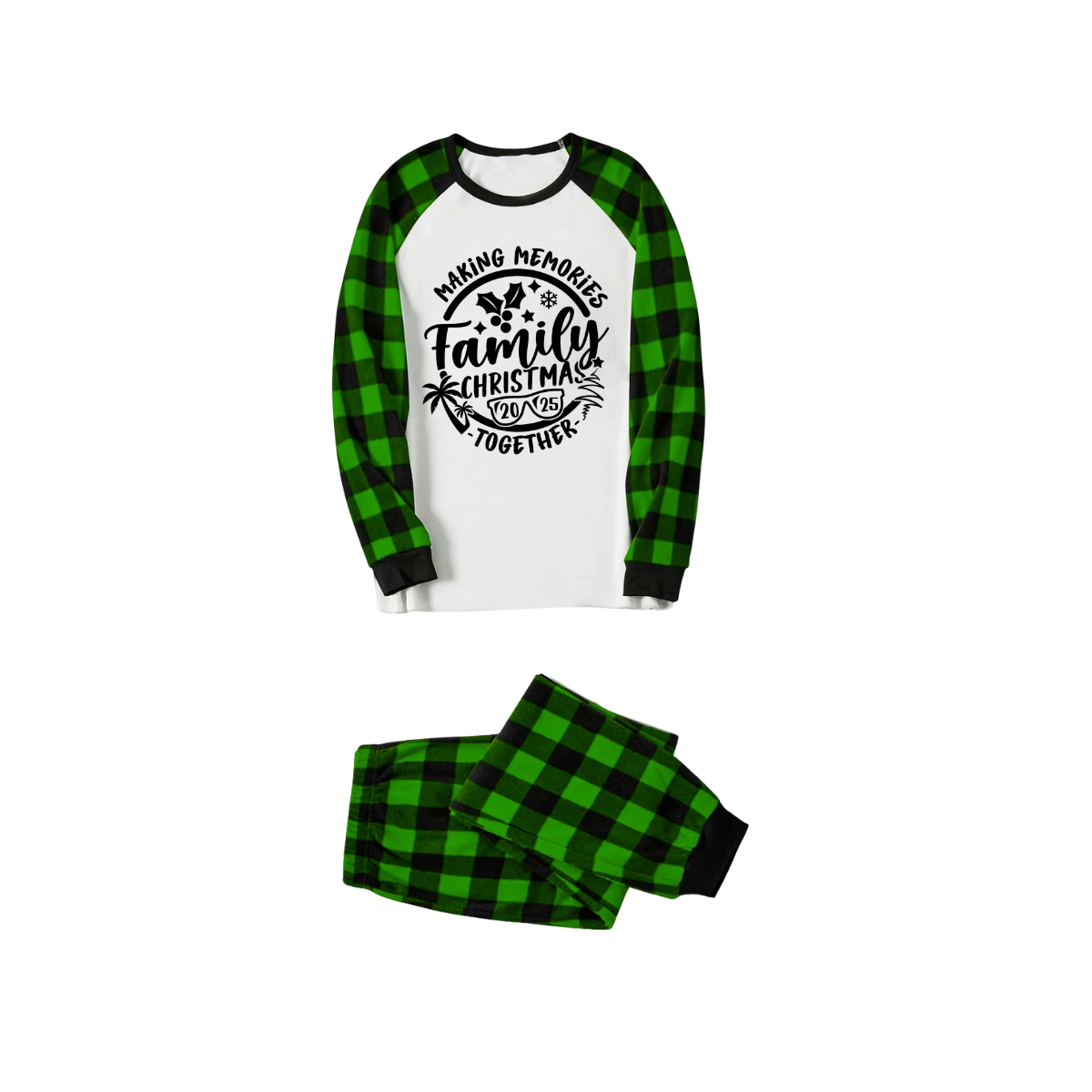 Making Memories Family Christmas Pajamas - White & Green Plaid