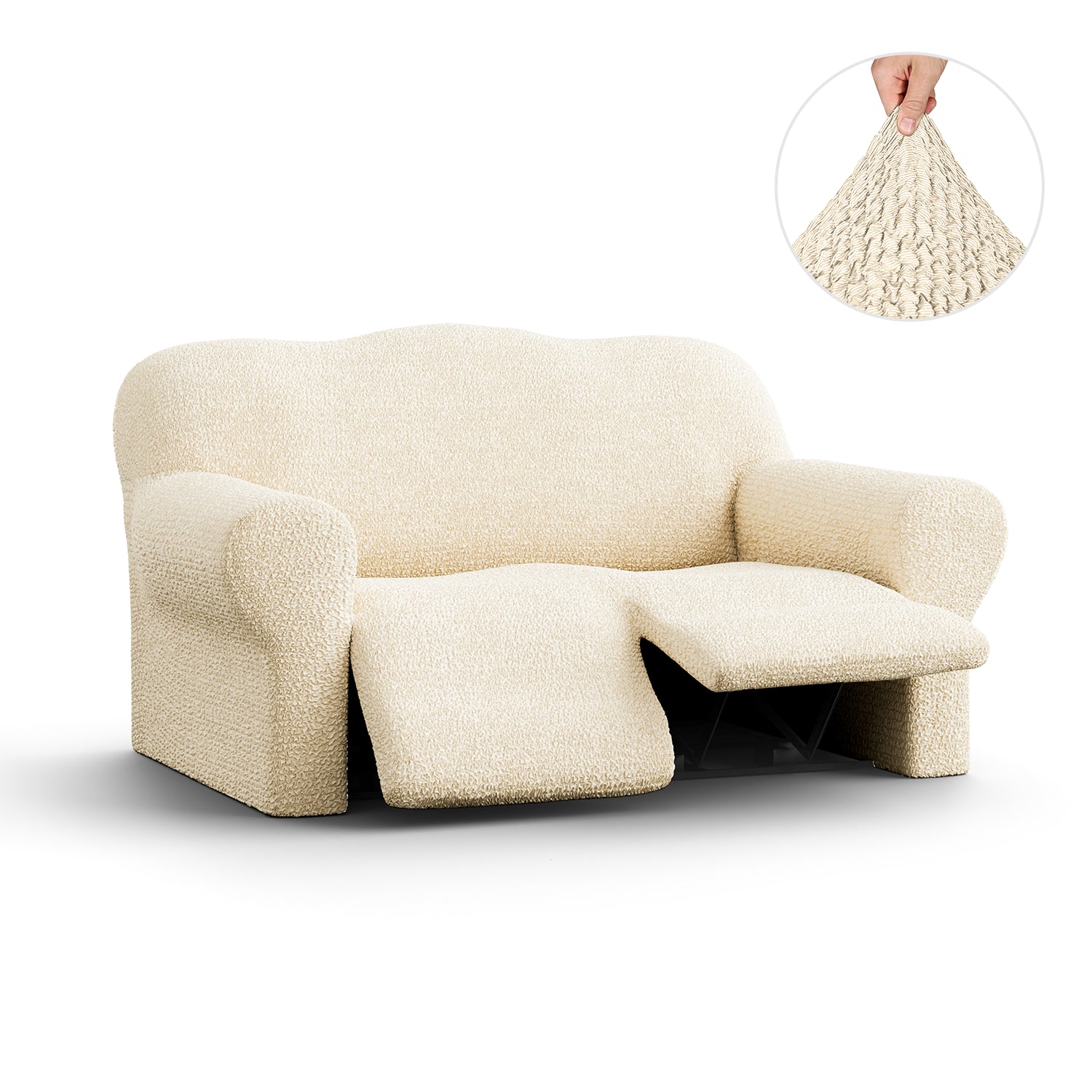 Reclining loveseat covers are made of patented stretch bi-elastic fabric. Furniture reclining slipcover fitting small and large couches 55”- 83” wide. PLEASE MEASURE BEFORE PURCHASING.