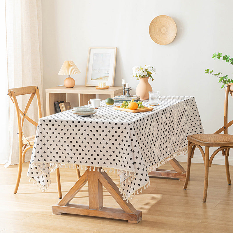 Modern White tablecloth with Black Dots REC