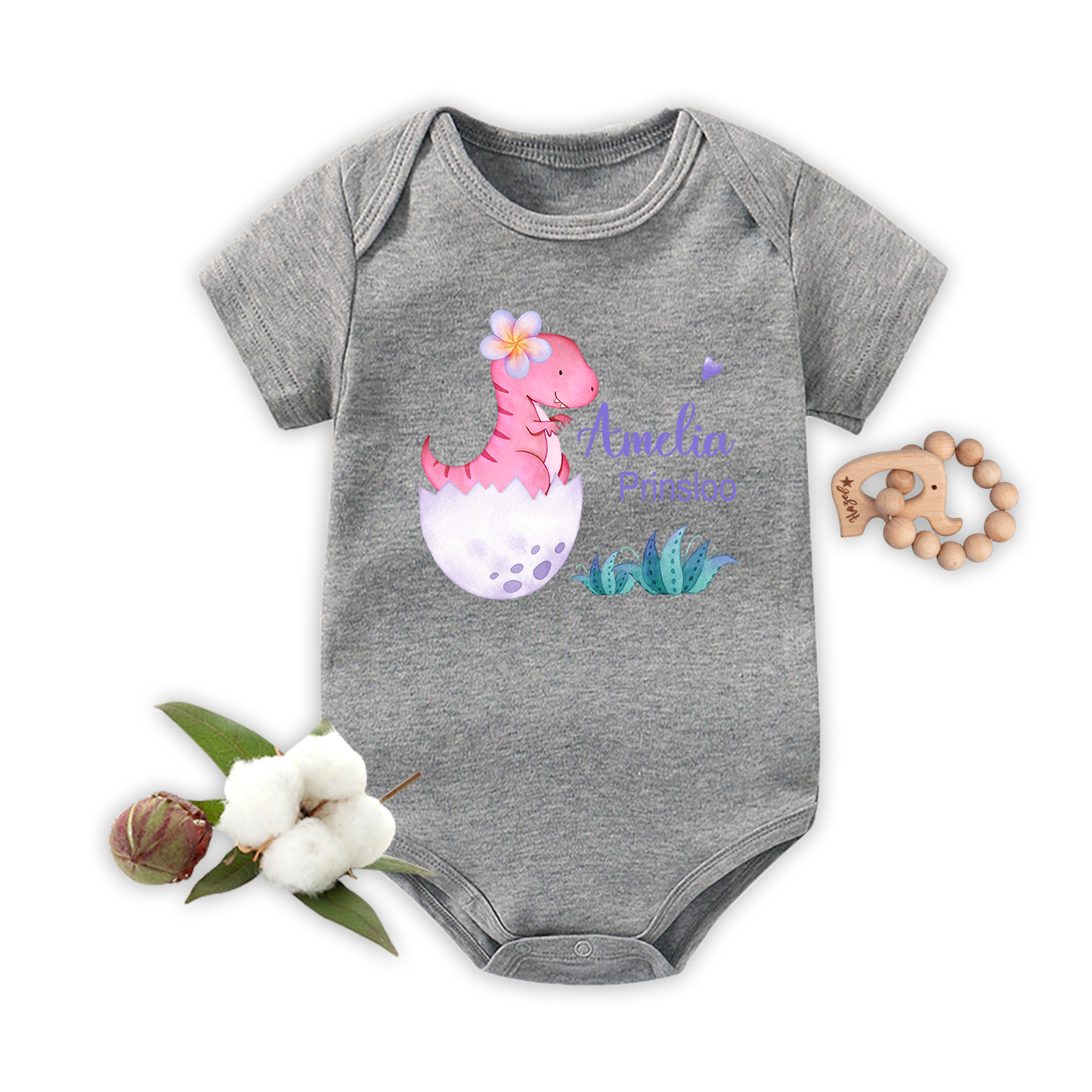 Personalized Pink Dinosaur Baby Name Bodysuit