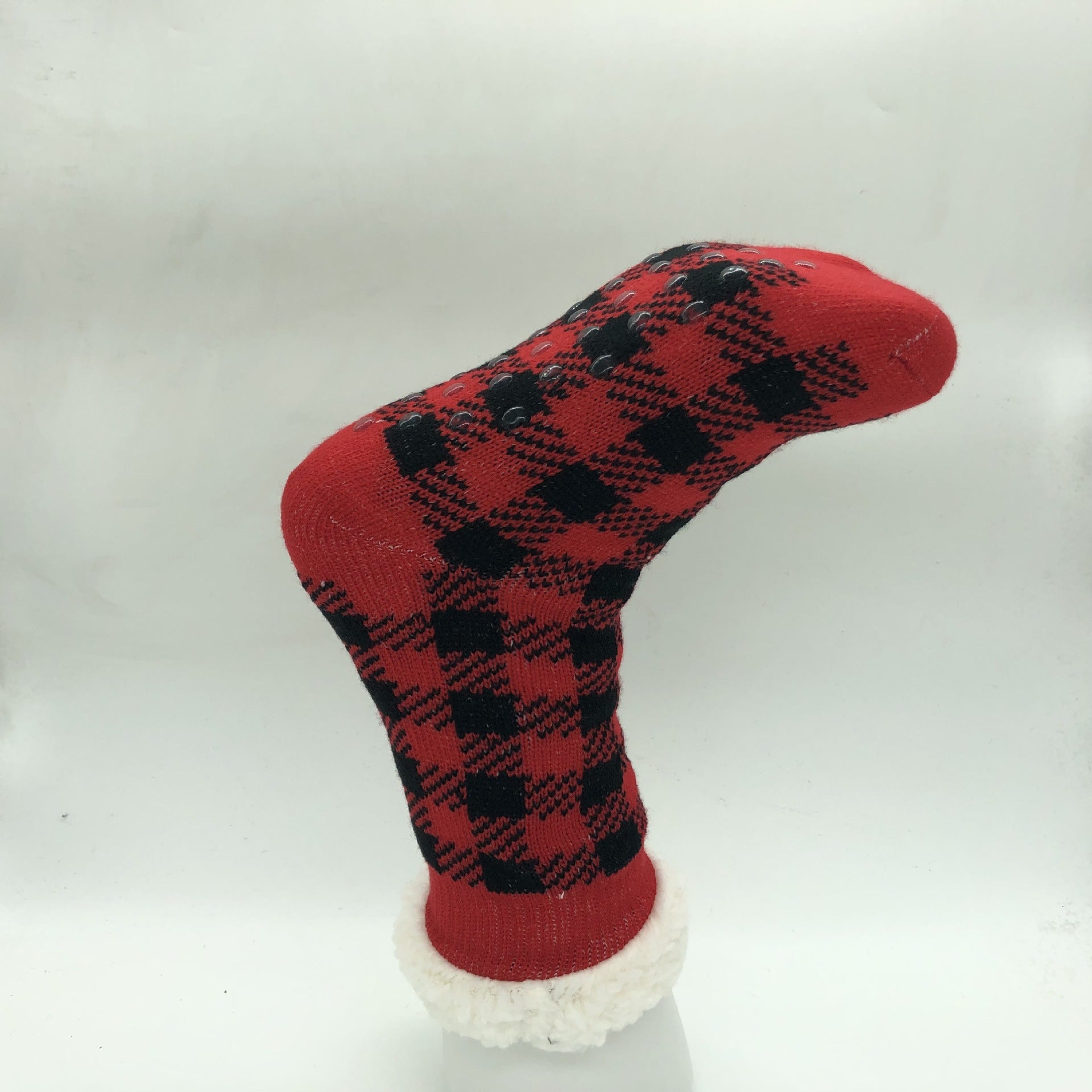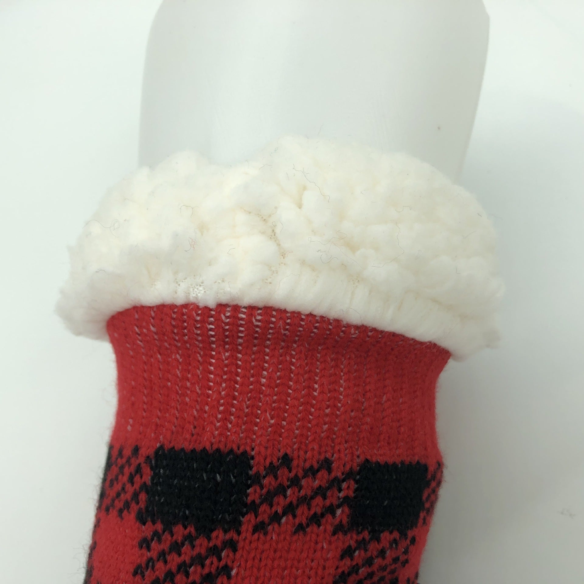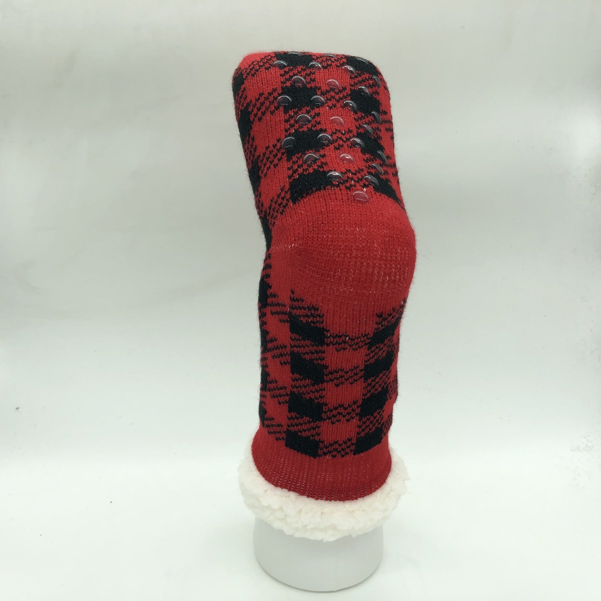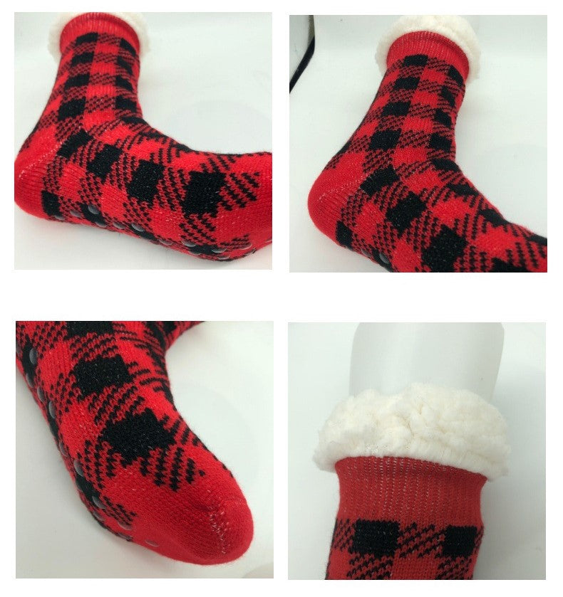 Plaid Thick Striped Sherpa Slipper Socks Leg Warmers For Cozy Home Sleep, Non-Slip Floor Socks For Autumn/Winter Women