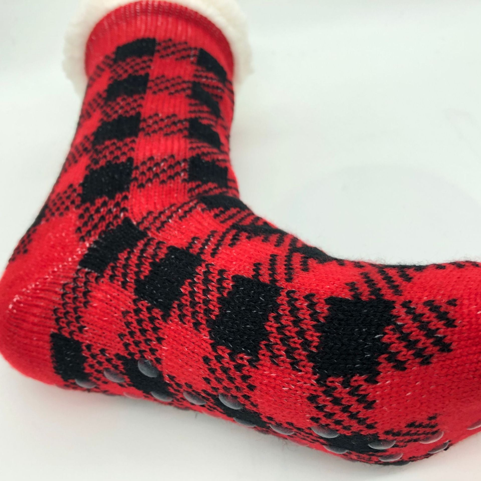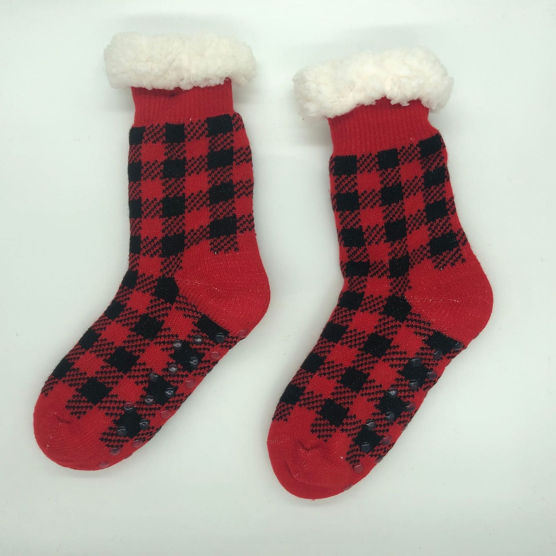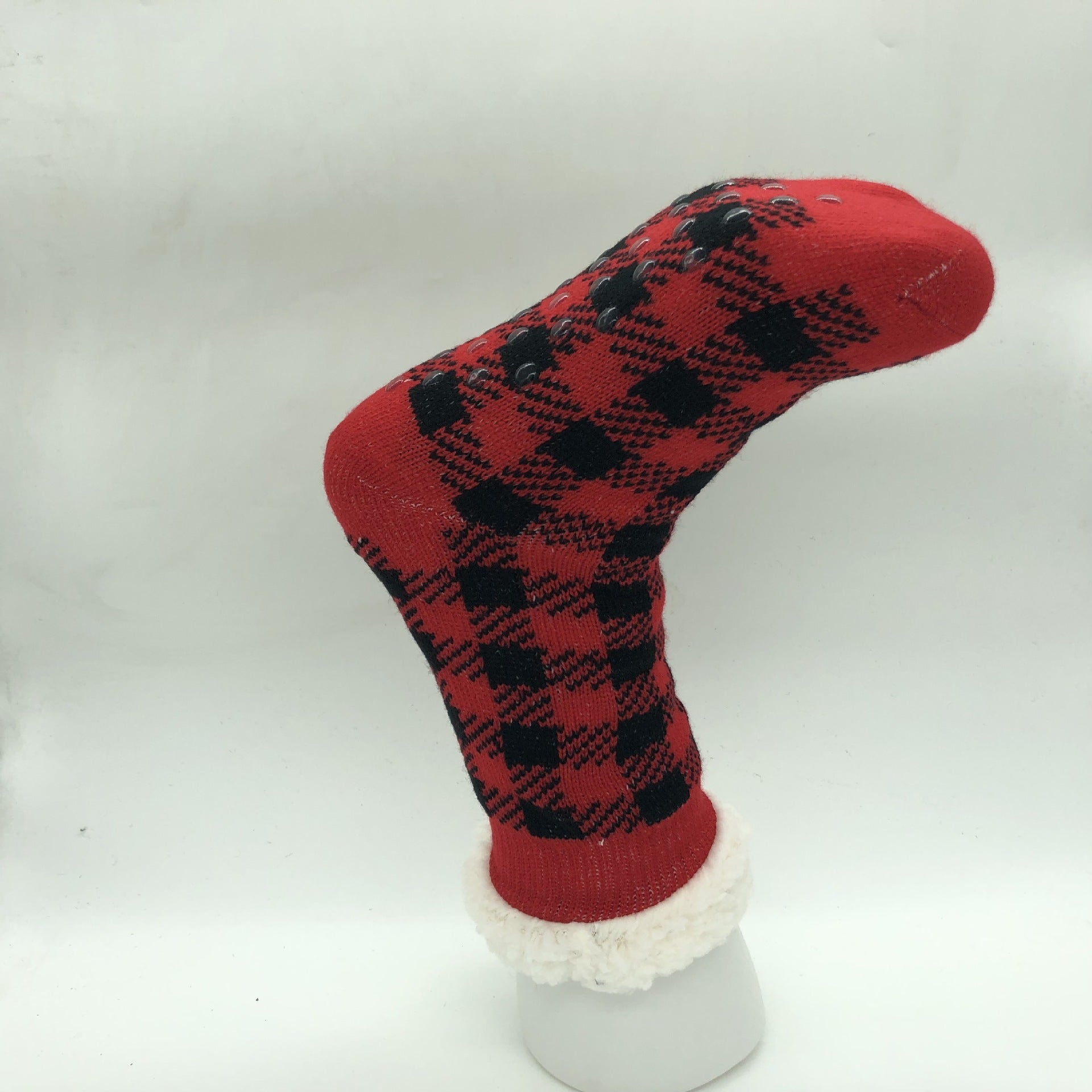 Plaid Thick Striped Sherpa Slipper Socks Leg Warmers For Cozy Home Sleep, Non-Slip Floor Socks For Autumn/Winter Women