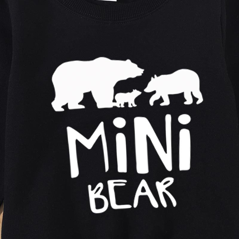 Polar Bear and Letter Print Family Matching Long-sleeve Black SweatshirtsFamily Matching Tee