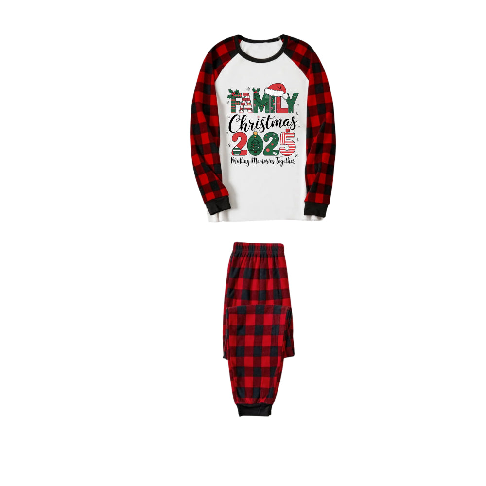 Red and Black Plaid Christmas Pajamas Set With Family Christmas 2025 Text Print