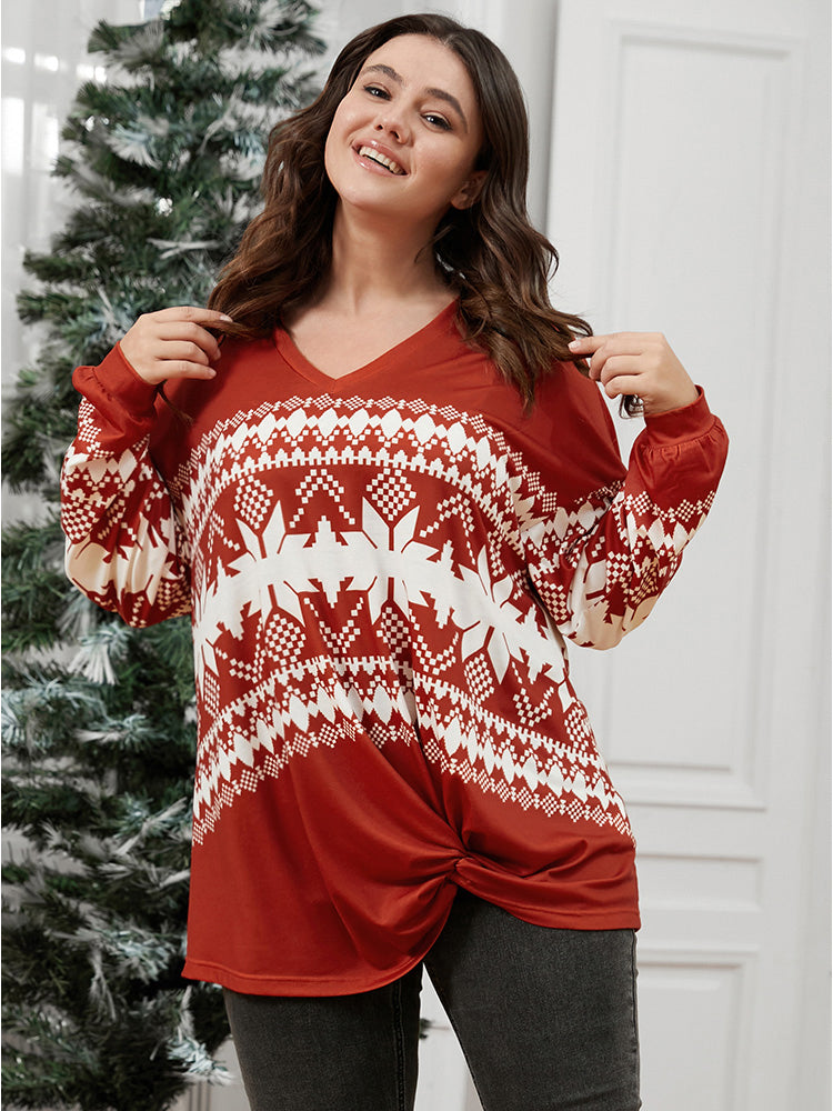 Snowflake Print Twist Front Sweatshirt 1007