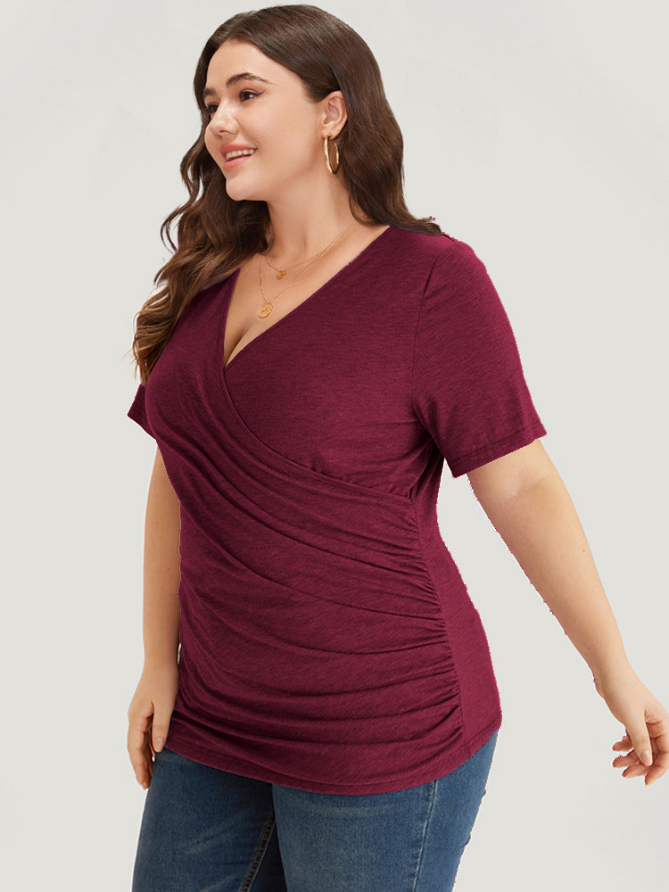 Solid Heather Overlap Collar Gathered T-shirt1006tees
