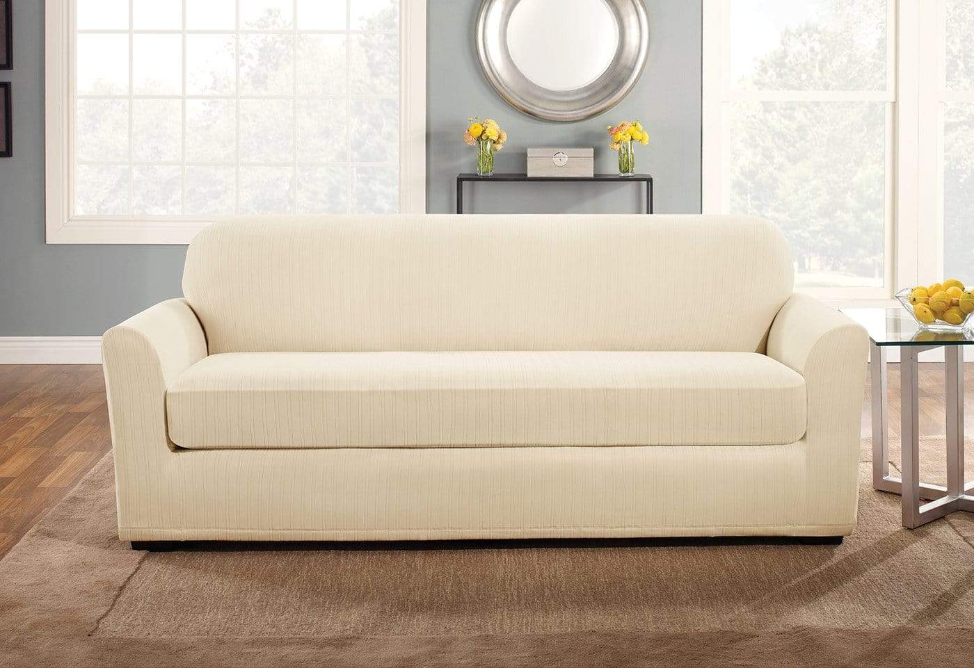 Stretch Pinstripe Two Piece Sofa Slipcover | Form Fit | Box Cushion | Machine Washable | Outlet Rec