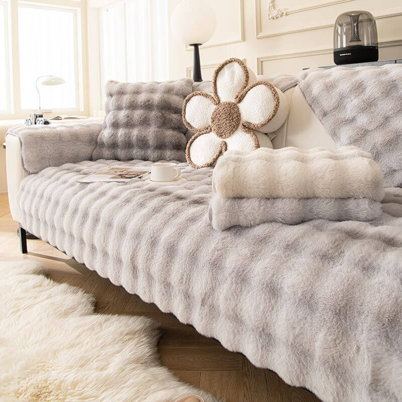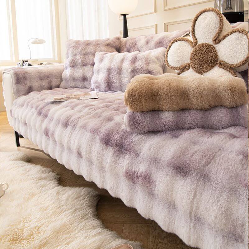 Stylish Gradient Plush Home Decor Washable Couch Cover rec