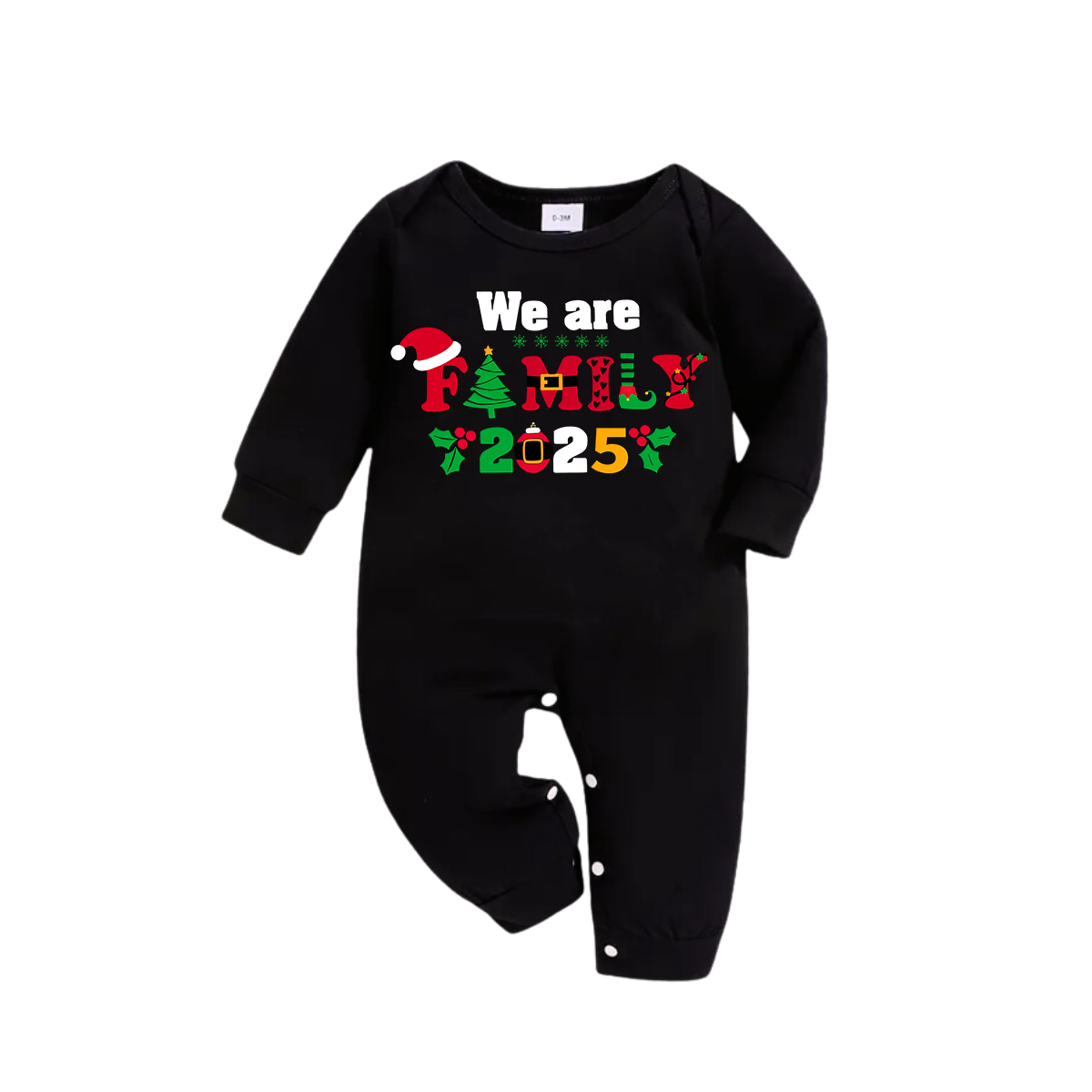 "We Are Family 2025" Coloful Text Pattern Black Long Sleeve Top