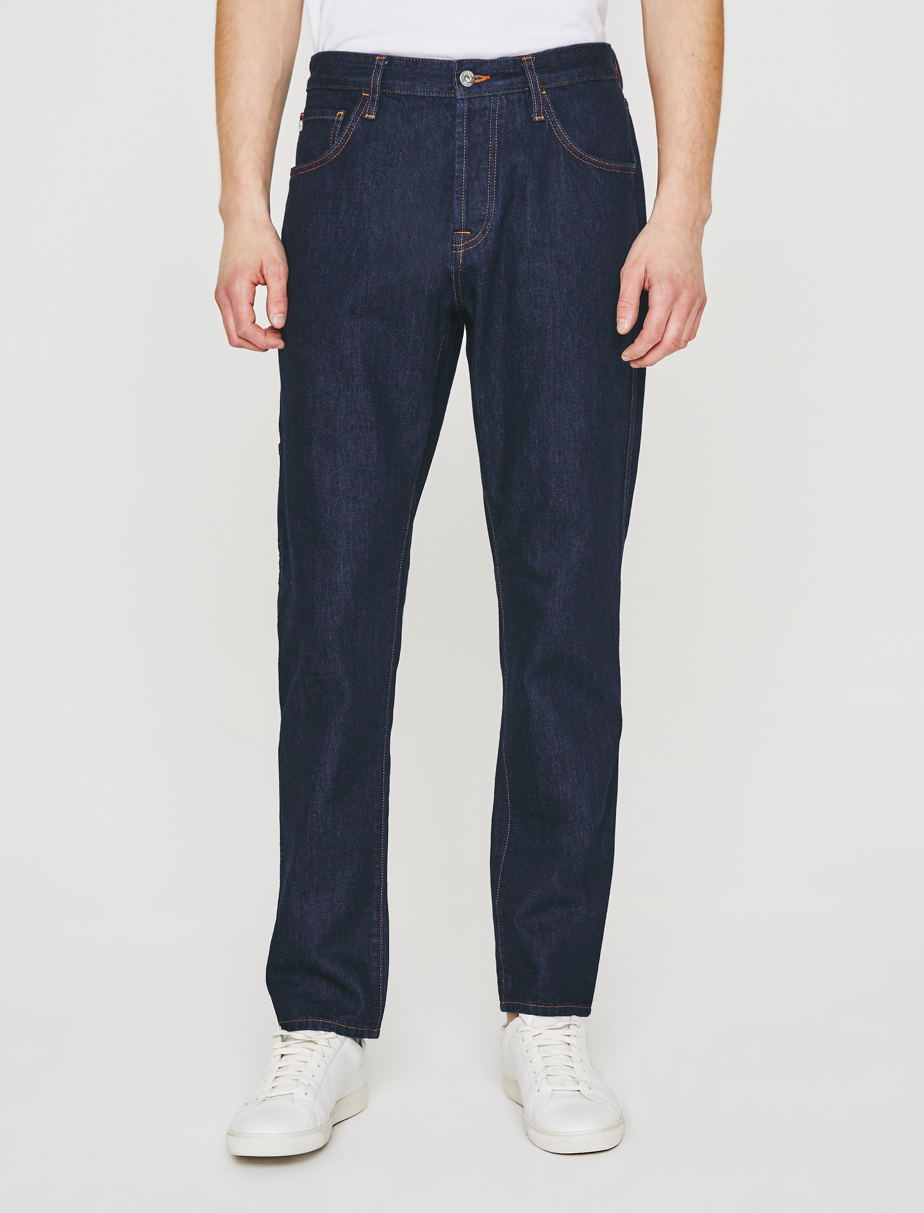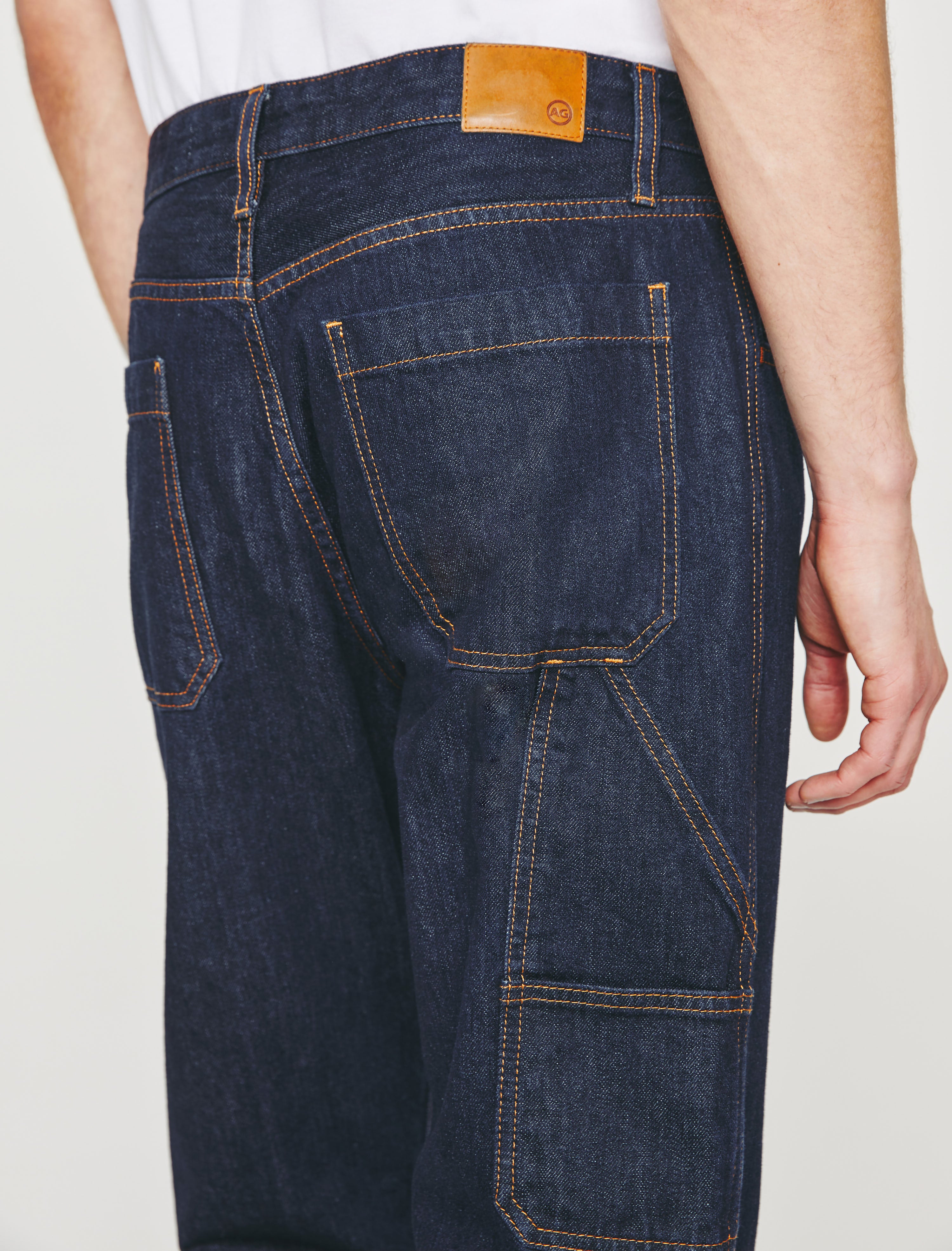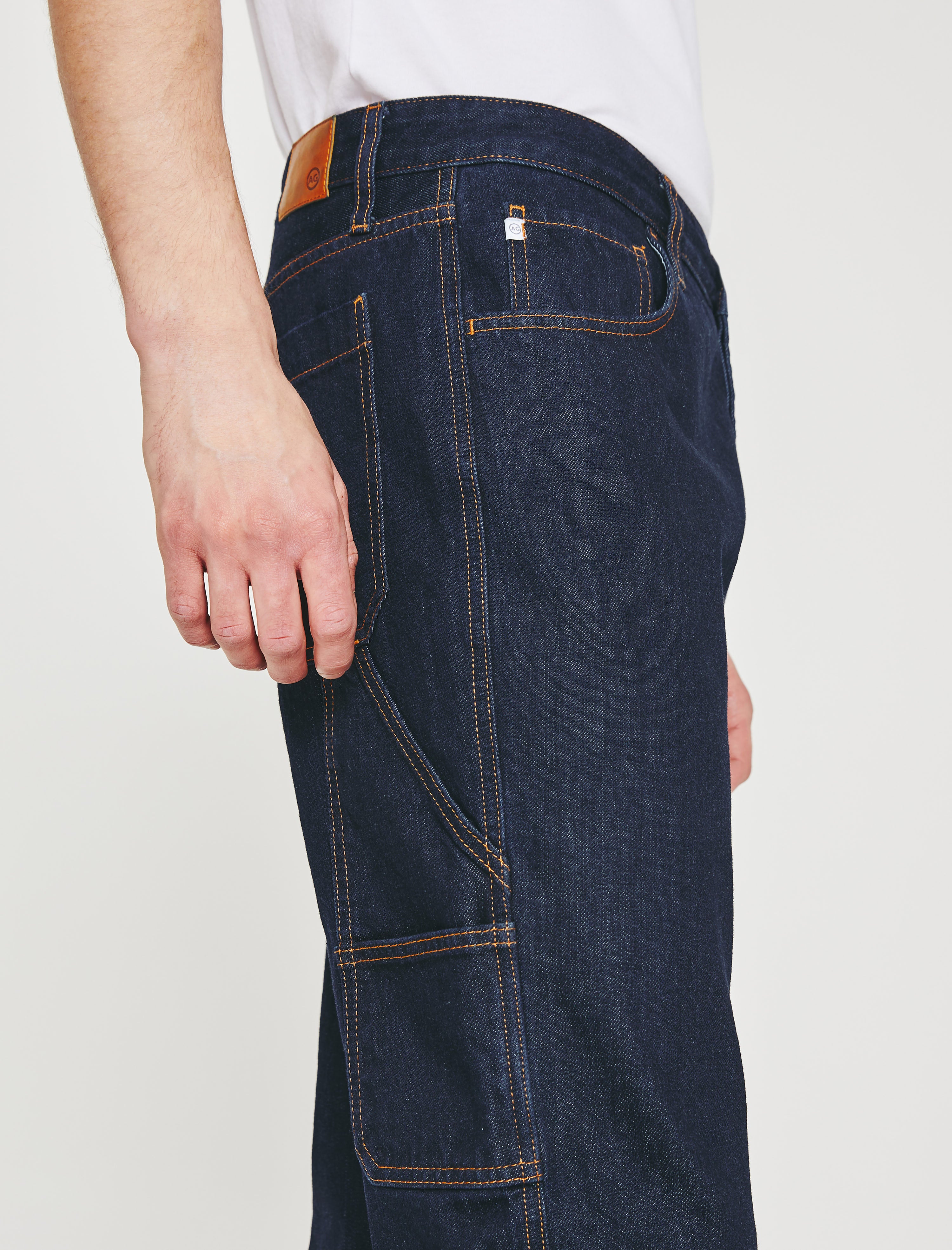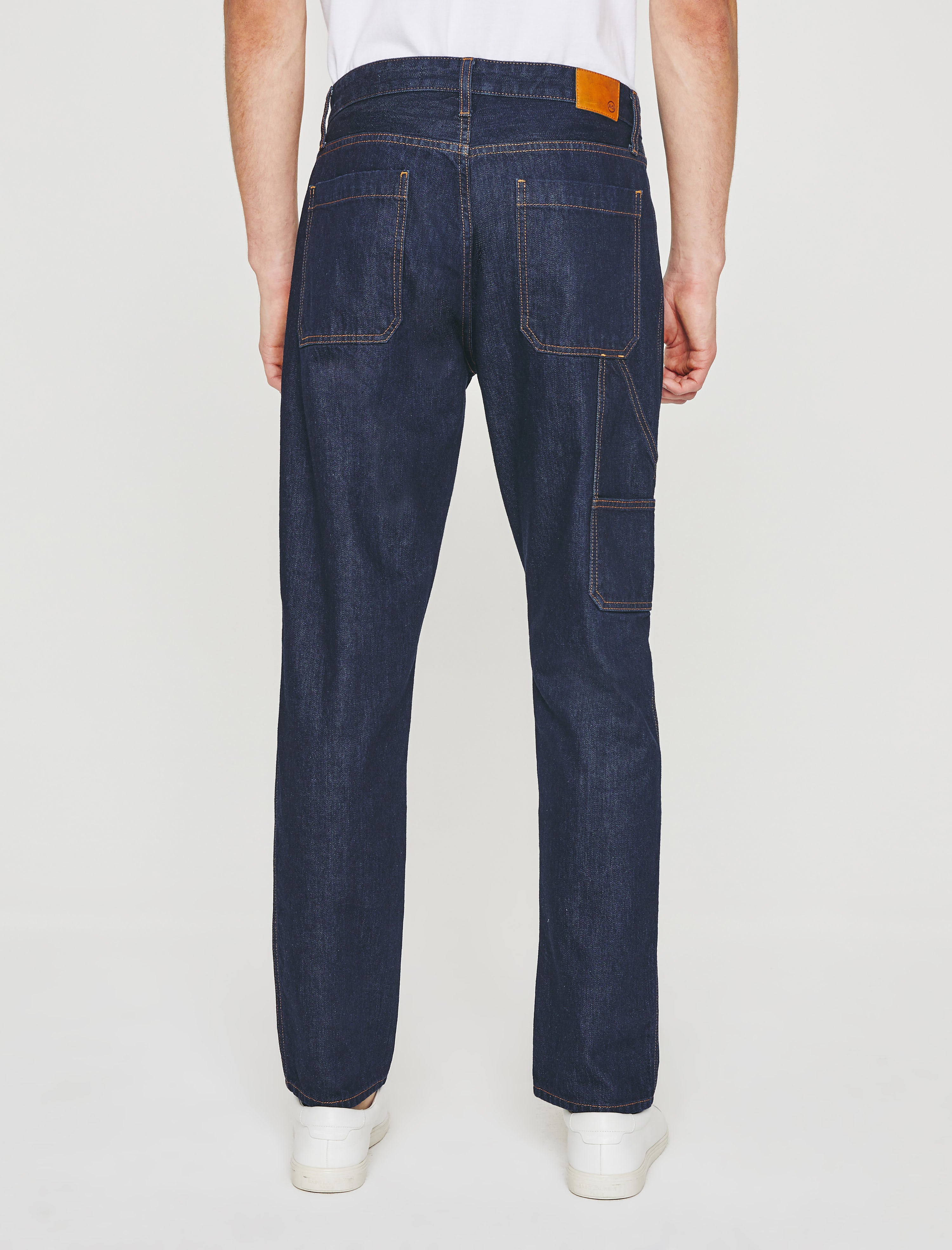 The Wells Carpenter jean brings a workwear update to our relaxed tapered fit. Crafted from rigid Legend Denim of 100% cotton, the pair features a dual tool pocket, hidden button fly, and a dark indigo rinse accented by marigold topstitching. Wells has a mid-rise waist and ease around the thighs, finishing with a straight cut.