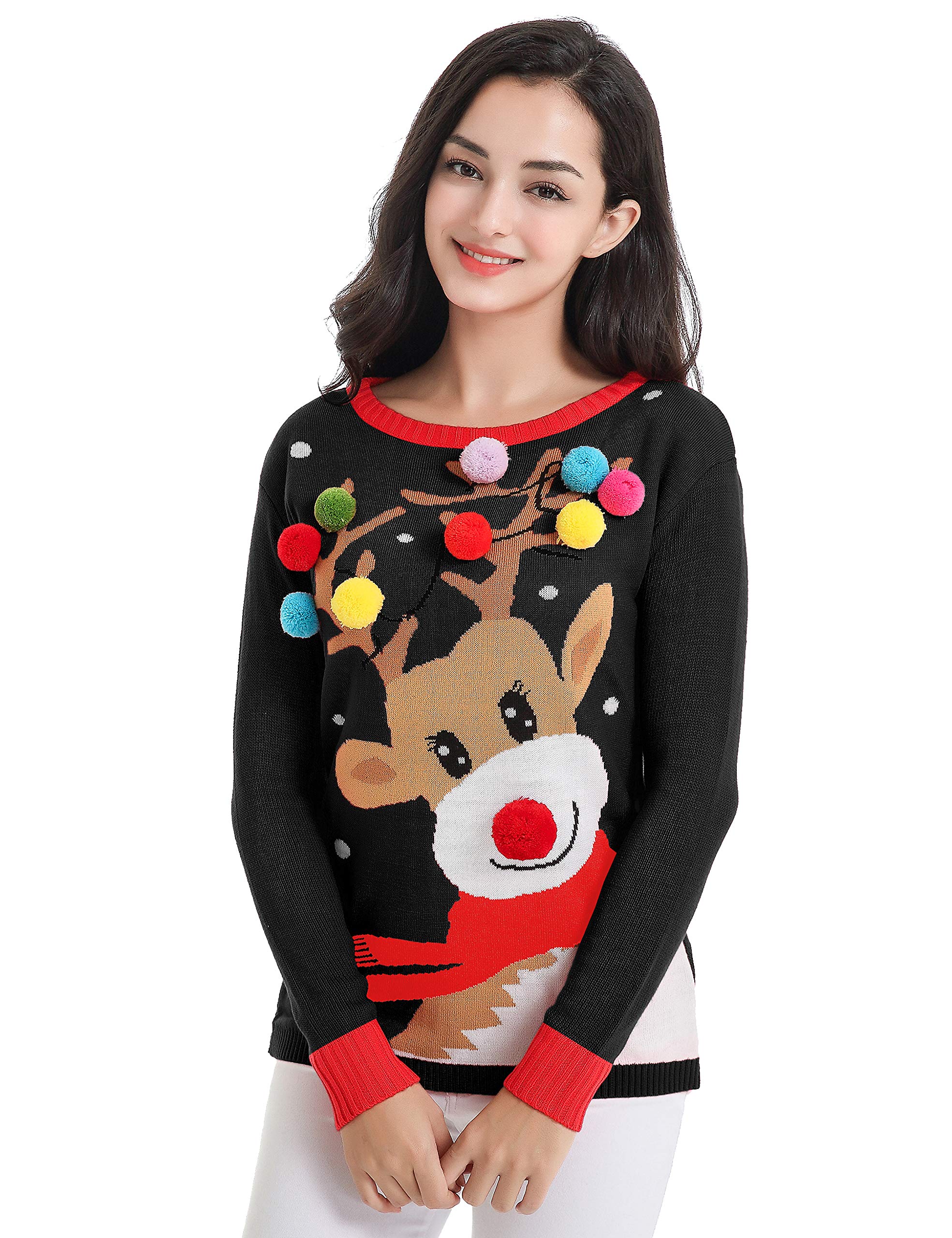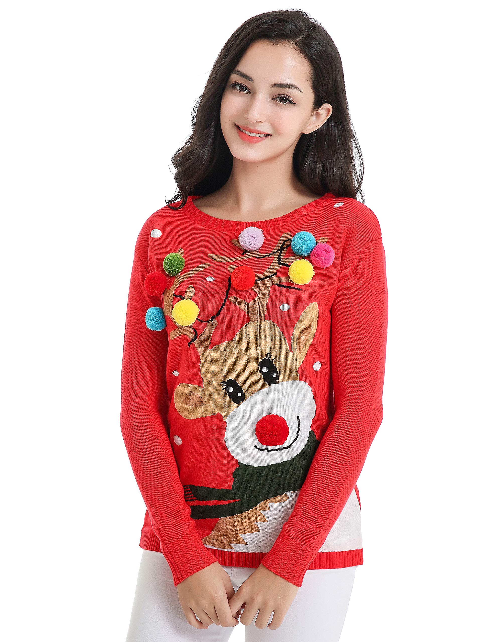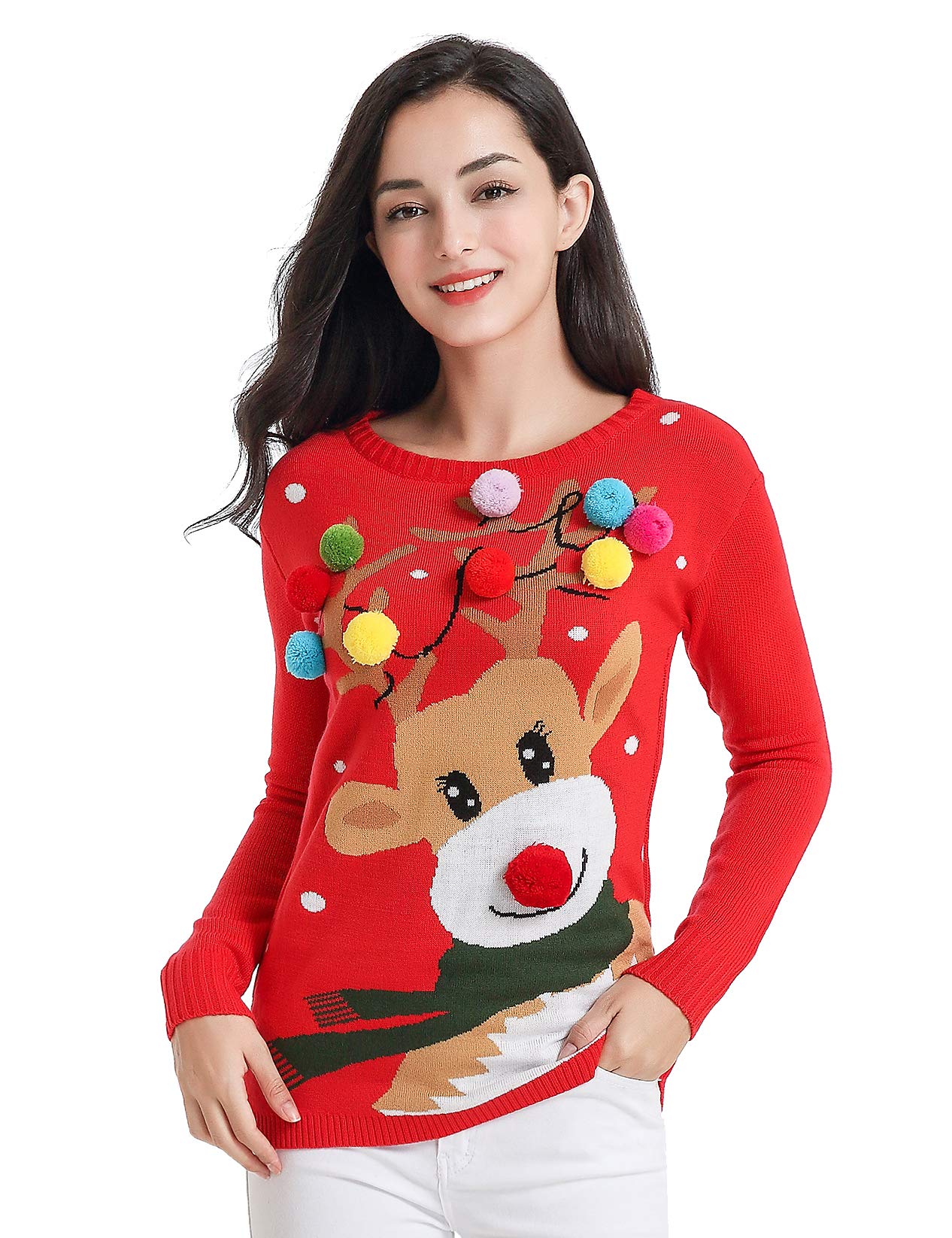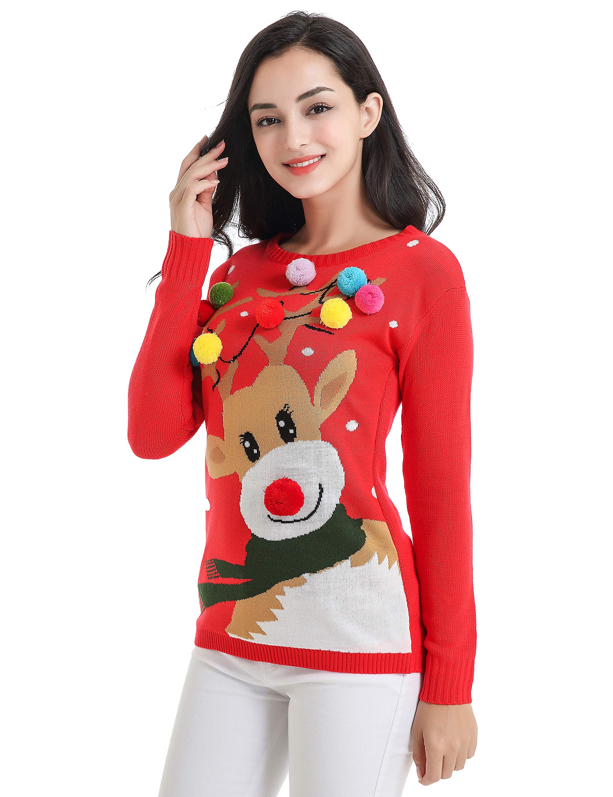 Women Reindeer Print Ugly Christmas Sweater