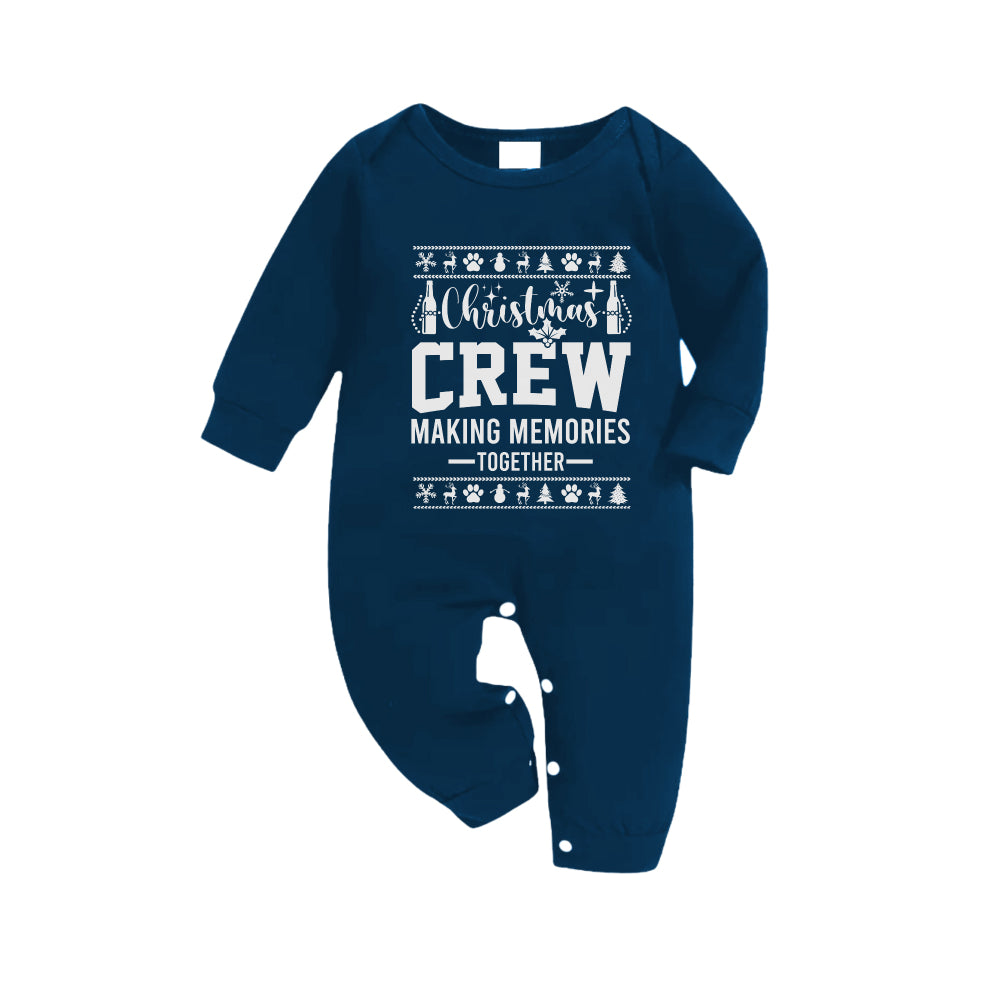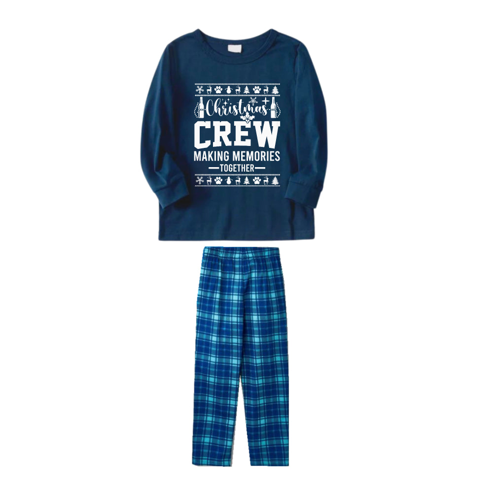 Christmas Family Matching Pajamas-Navy & Sky Blue Plaid Pjs Set with "Christmas Crew Making Memories Together" and Christmas Pattern Print
