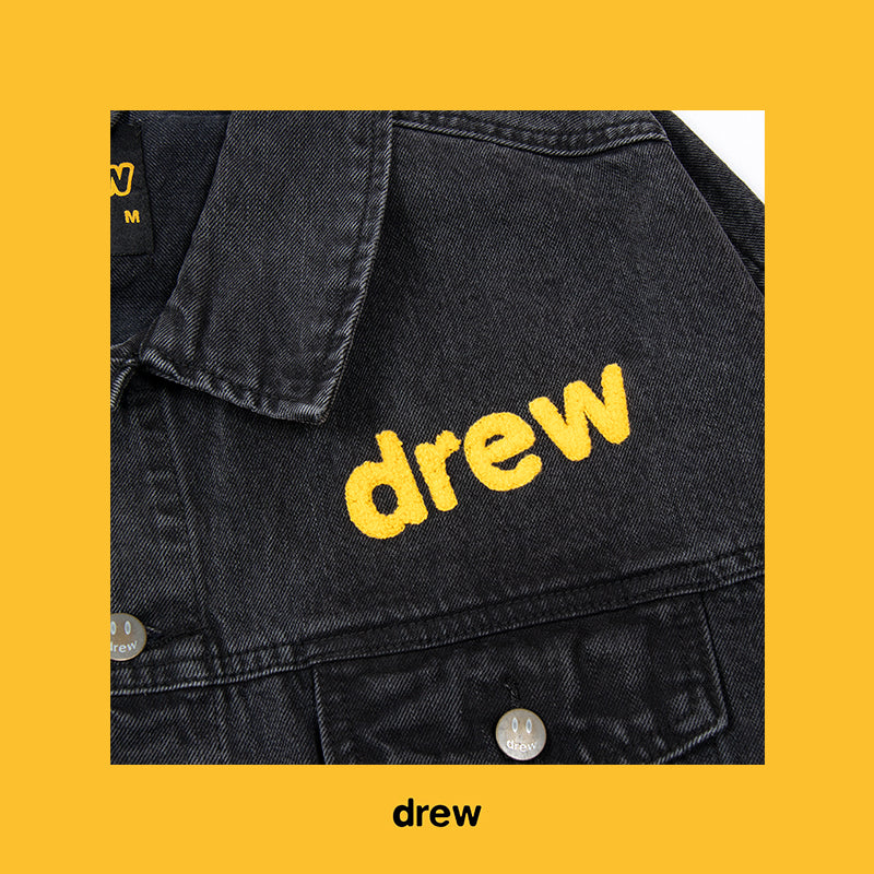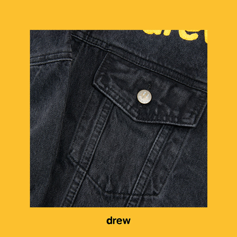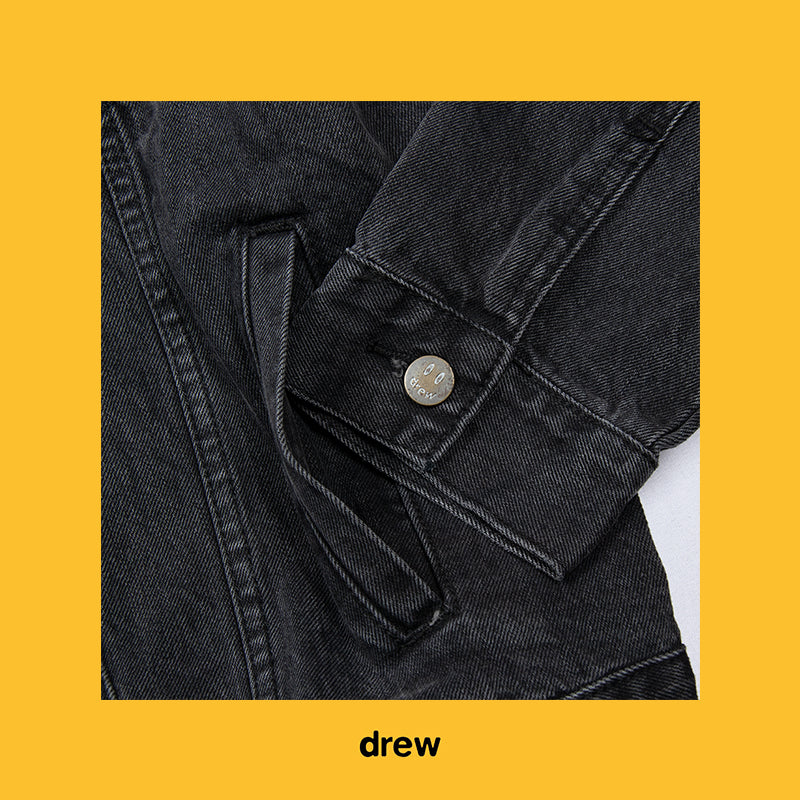 Drew hosue mascot smiling face Bieber couple wash water black high street fog denim jacket