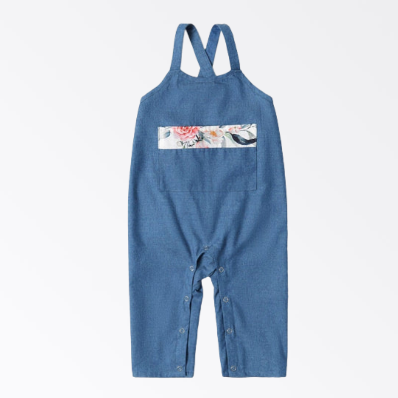 Floral Print Stitching Family Matching Navy Blue Sets