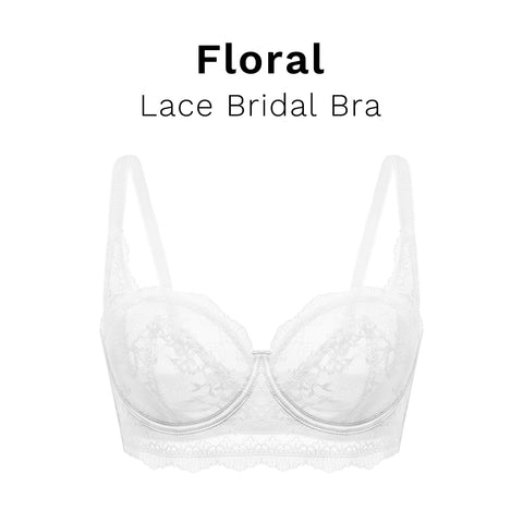 HSIA Floral Lace Unlined Bridal White Balconette Bra Set