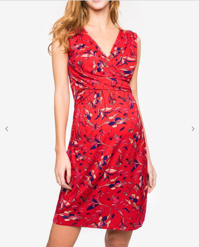 Maternity Floral Print V-neck Cross Front Short Sleeve Cotton Dress