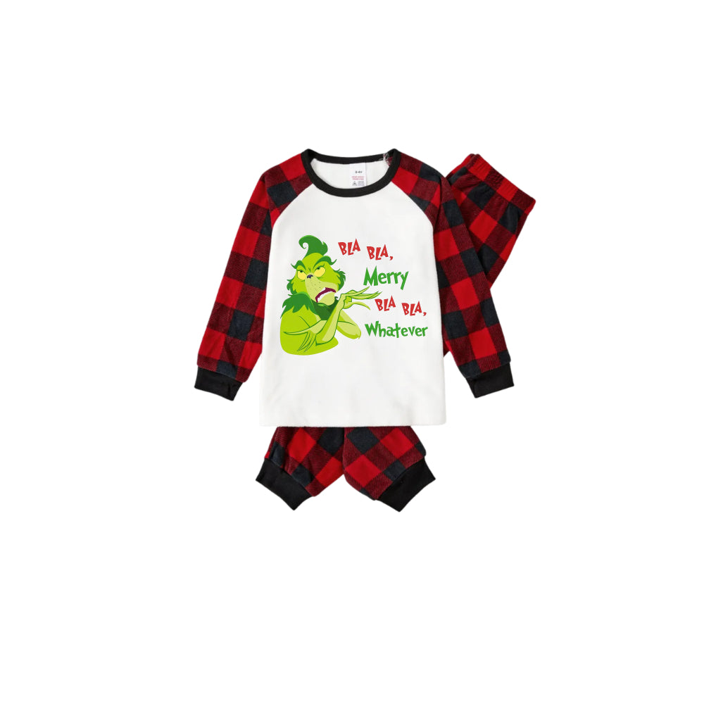 Red and Black Plaid Christmas Pajamas Set With Grinchy Cartoon Print