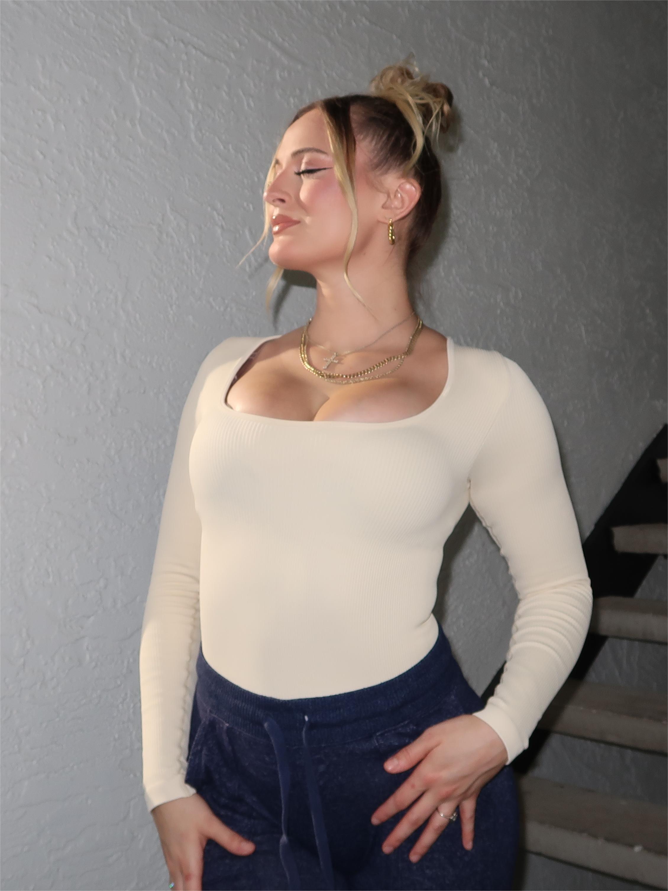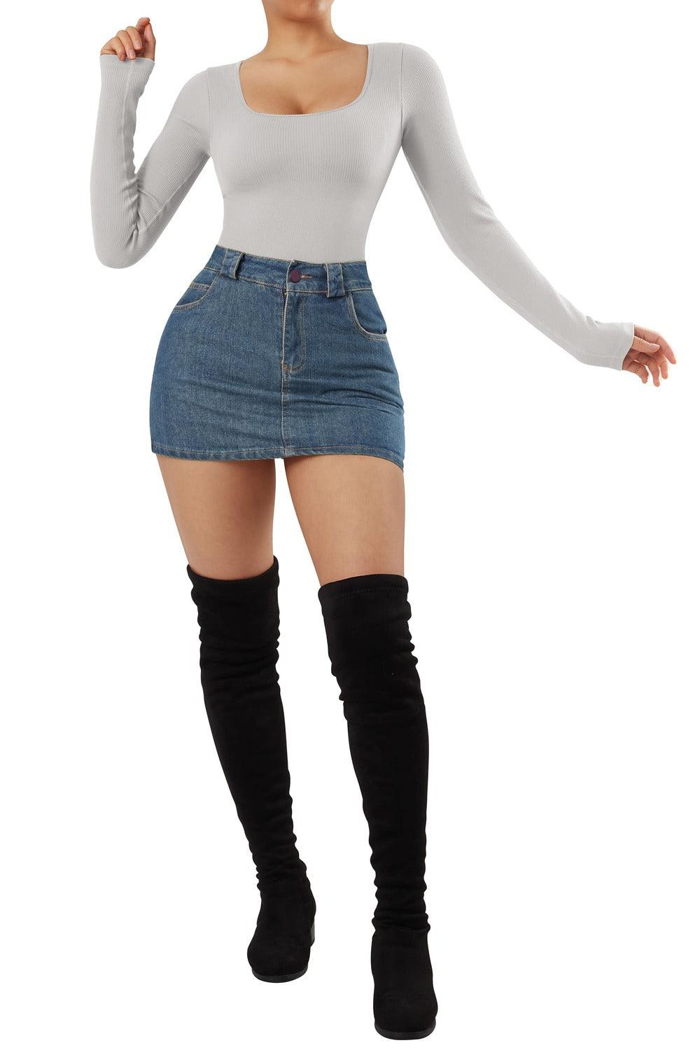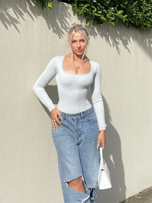 Flash Sales - Ribbed Square Neck Bodysuit - Long Sleeve